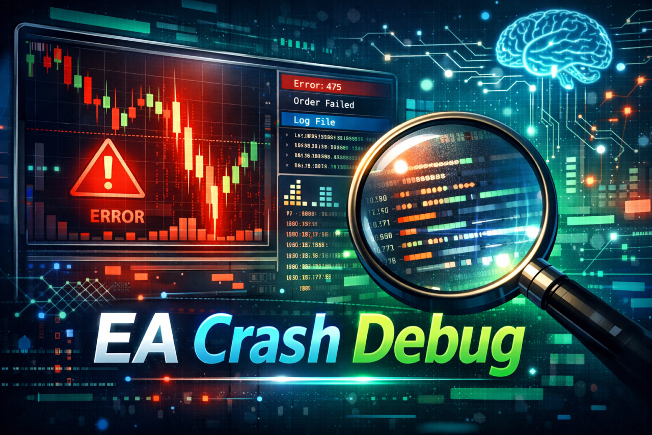 EAクラッシュ:MetaTrader(MT4/MT5)上で稼働するEAが、例外・ロジック不整合・環境要因により停止または異常動作する状態。