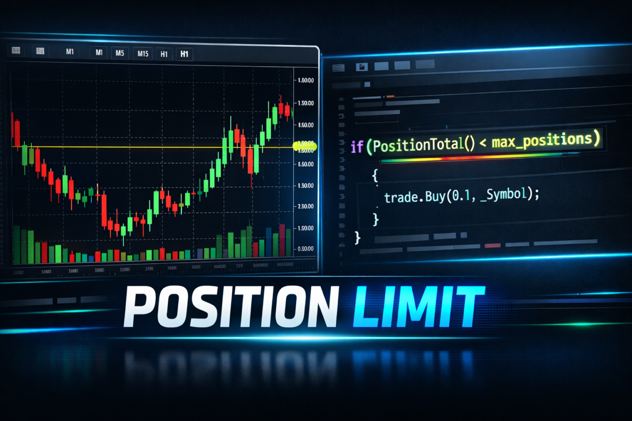 MQL5でmax-position-limitを実装するには、「現在のポジション数を取得し、上限未満の場合のみ注文を許可する」条件分岐をエントリー前に追加します。